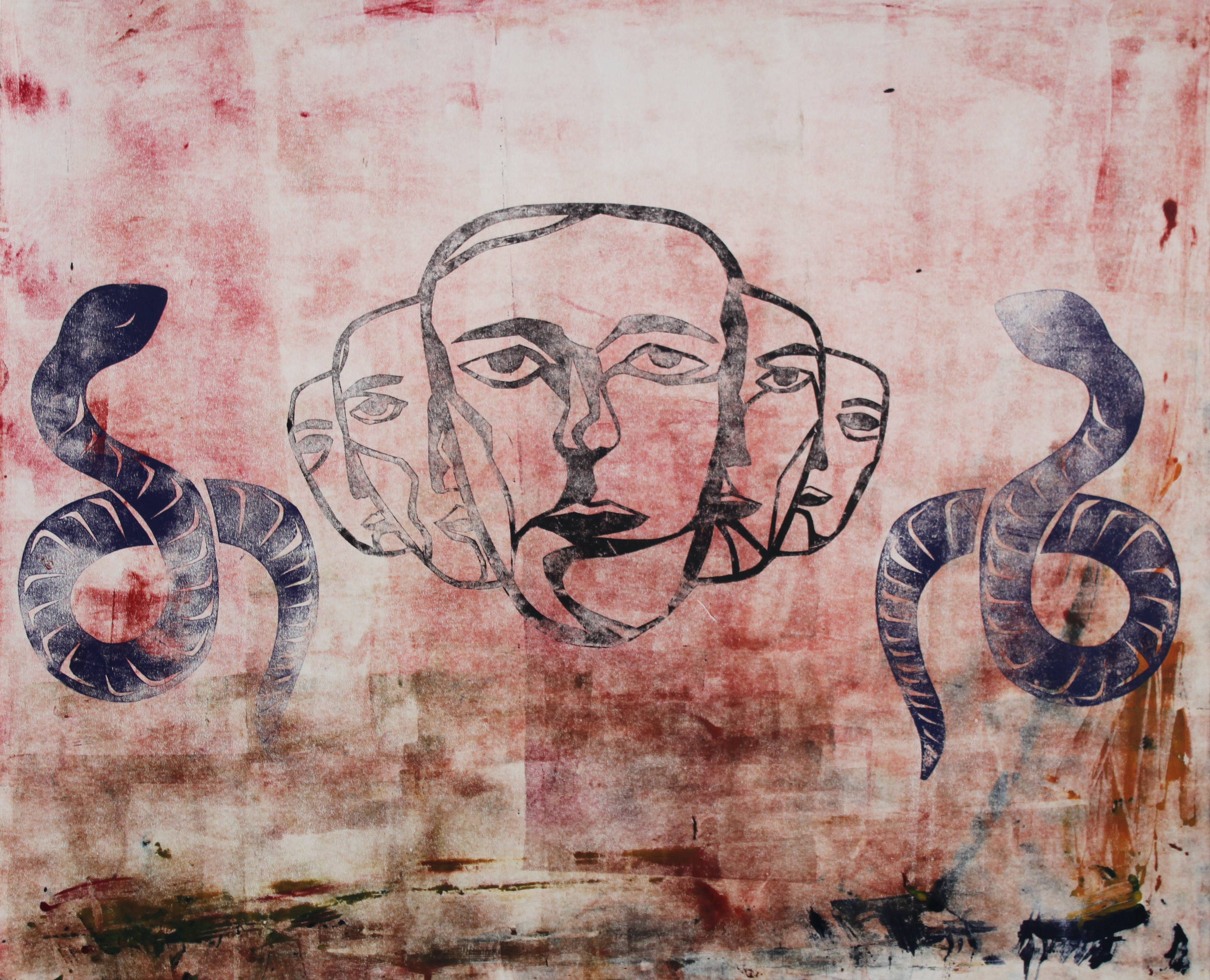 Les Trois Grâces entre les Tourniquets, 2019. 11x15”, etching.